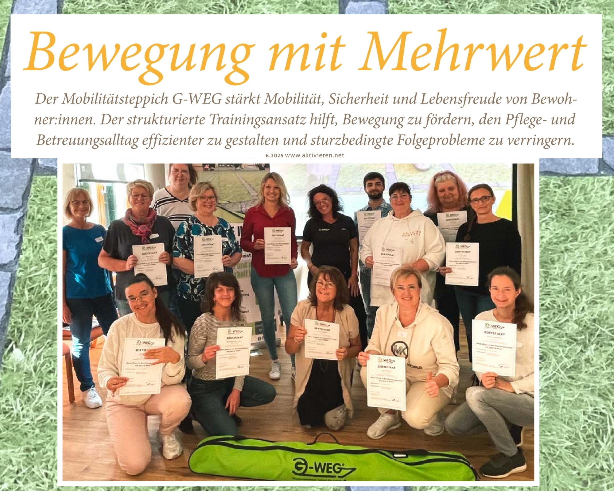 Der G-WEG Artikel „Bewegung mit Mehrwert“ ist bundesweit in der aktuellen Ausgabe der aktivieren aus dem Vincentz Verlag erschienen.