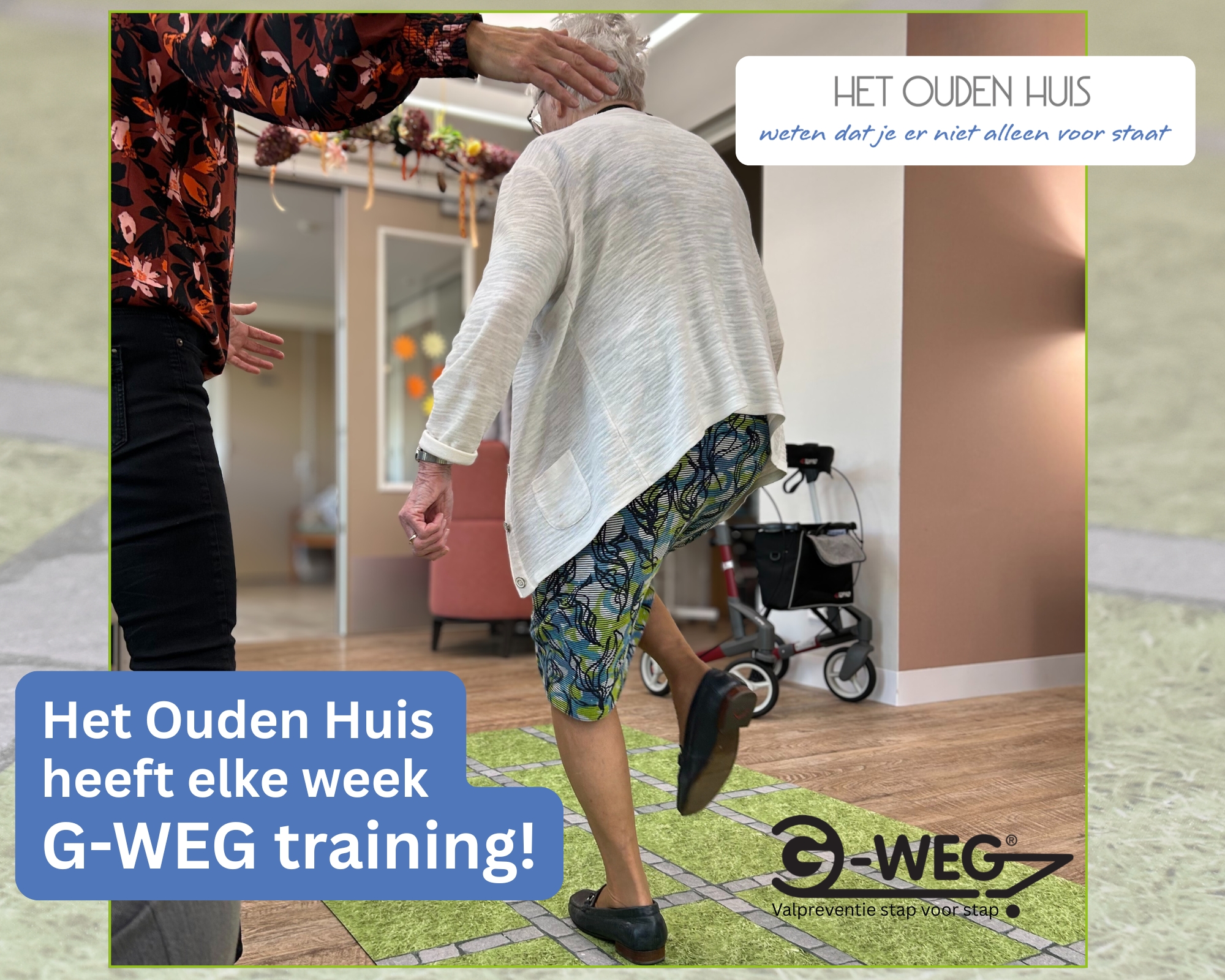 Seit November 2024 arbeitet Het Ouden Huis aktiv mit dem deutschen G-WEG-Konzept zur Sturzprävention. Dieses Trainingsprogramm kombiniert körperliche und kognitive Übungen, um Kondition, Muskelkraft, Koordination und Gleichgewicht zu verbessern – entscheidende Faktoren für Mobilität und Lebensqualität im Alter.